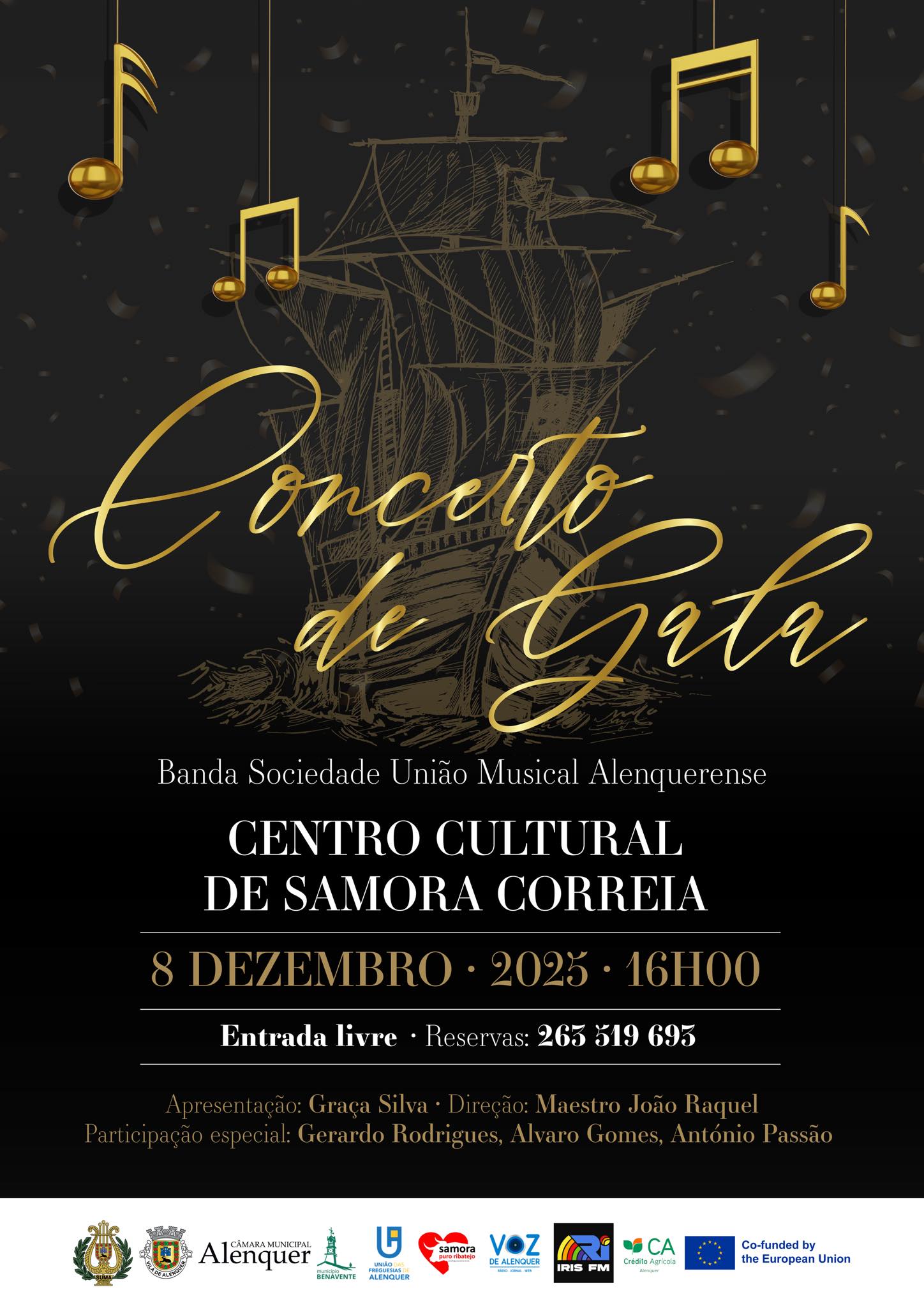 A Sociedade União Musical Alenquerense vai realizar o 24.º concerto de gala na próxima segunda-feira, dia 8 de dezembro, em Samora Correia. Este ano, o concerto vai ser transmitido pela Voz de Alenquer.